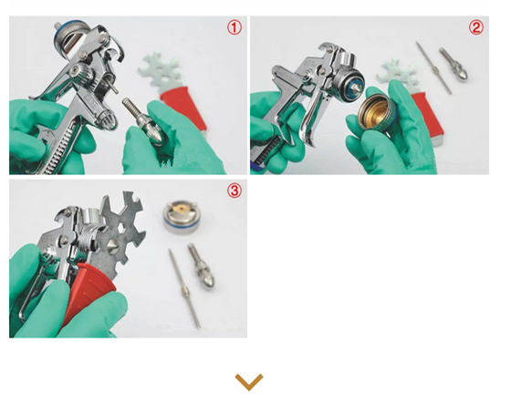 § 請(qǐng)使用原裝工具安裝、拆卸噴槍配件。